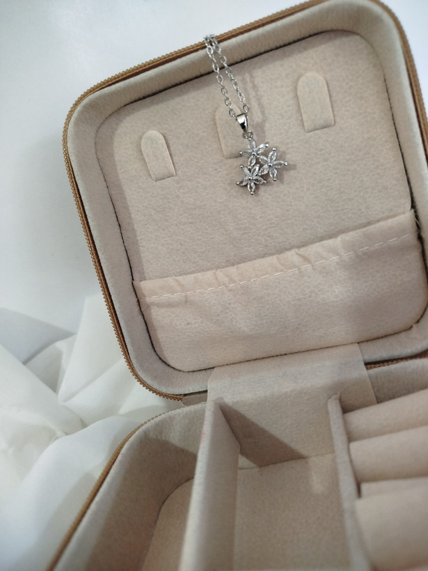 زنجیر کار استیل و نگین های آویز گل مخارج کاری شده.